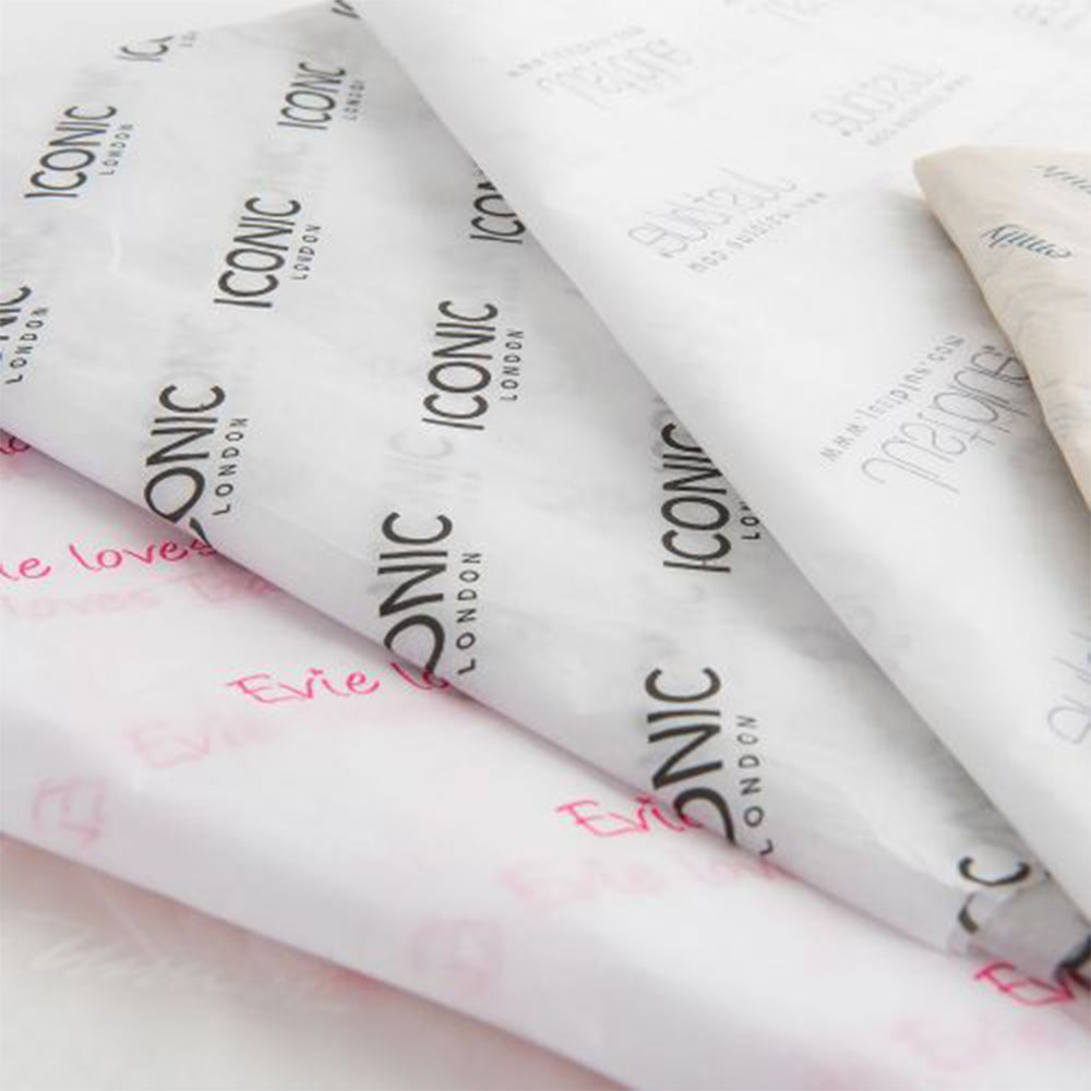 کاغذ بسته بندی چاپ اختصاصی طبق طرح مشتری در تیراژ های بالا قابل انجام است. متریال کاغذ پوستی نیمه شفاف می باشد. رنگ چاپی باید یک رنگ باشد اما آن یک رنگ میتواند رنگ ساختگی و هر رنگی طبق سفارش باشد.