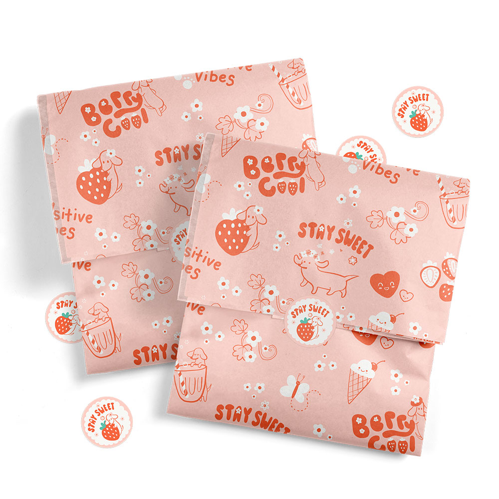 کاغذ بسته بندی چاپ اختصاصی طبق طرح مشتری در تیراژ های بالا قابل انجام است. متریال کاغذ تحریر 80 گرم مات می باشد. رنگ چاپی تمام رنگ و بدون محدودیت میباشد.